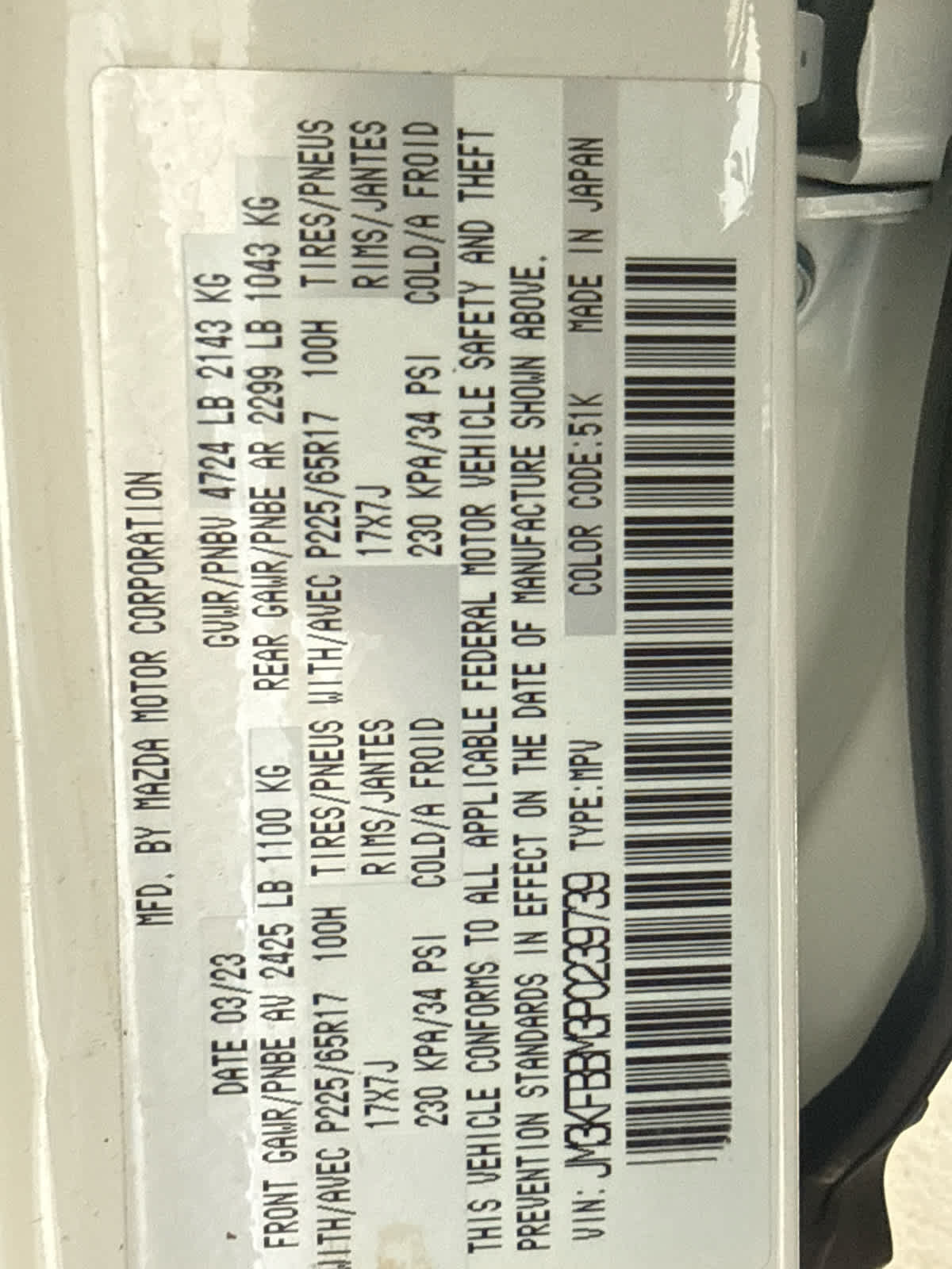 - Vehicle Name: Mazda CX-5