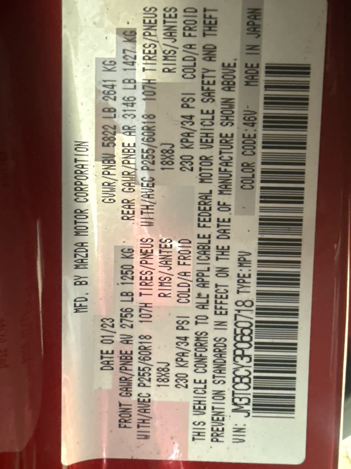 - Vehicle Name: Mazda CX-9