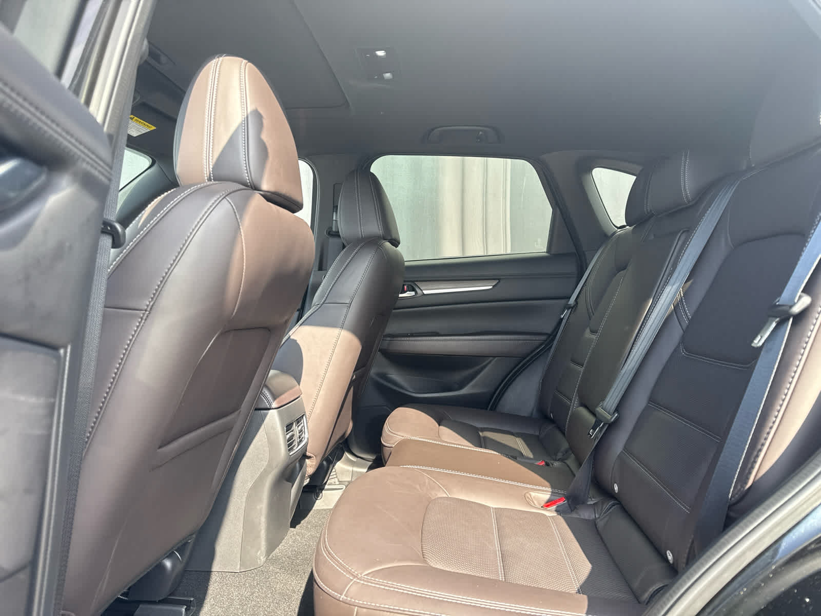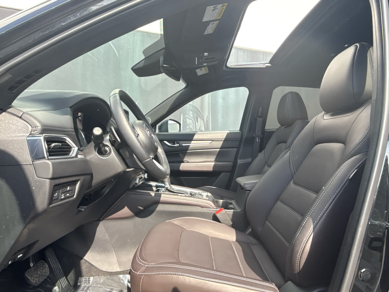 Leather Seats, Navigation, Sunroof, All Wheel Drive, Power Liftgate, Heated Driver Seat, Heated Rear Seat, Cooled Driver Seat, Back-Up Camera, Premium Sound System, Satellite Radio, iPod/MP3 Input, Onboard Communications System, Aluminum Wheels, Keyless Start Rear Spoiler, MP3 Player, Keyless Entry, Remote Trunk Release, Privacy Glass. 2025 Mazda CX-5 with Jet Black Mica exterior and Caturra Brown interior features a 4 Cylinder Engine with 227 HP at 5000 RPM*. Serviced here, Non-Smoker vehicle